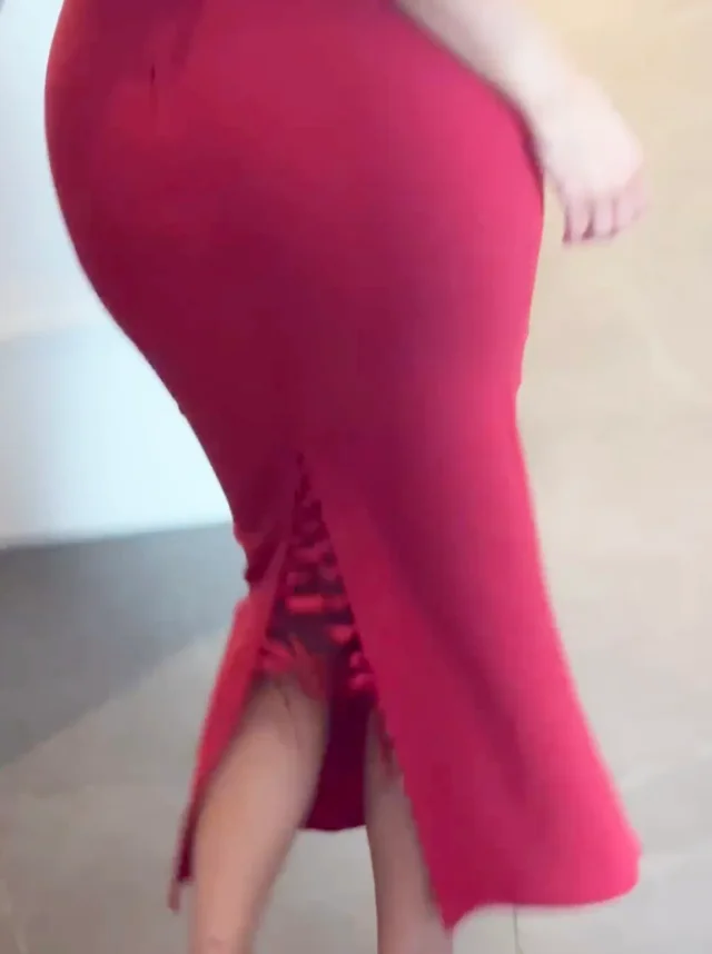 The mom of two also shared a short video clip highlighting the midi’s satin ribbon lace-up design at the back hem.